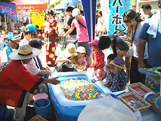 スーパーボールは大変好評でほぼ完売。祭りを見に来た子供達に楽しんで